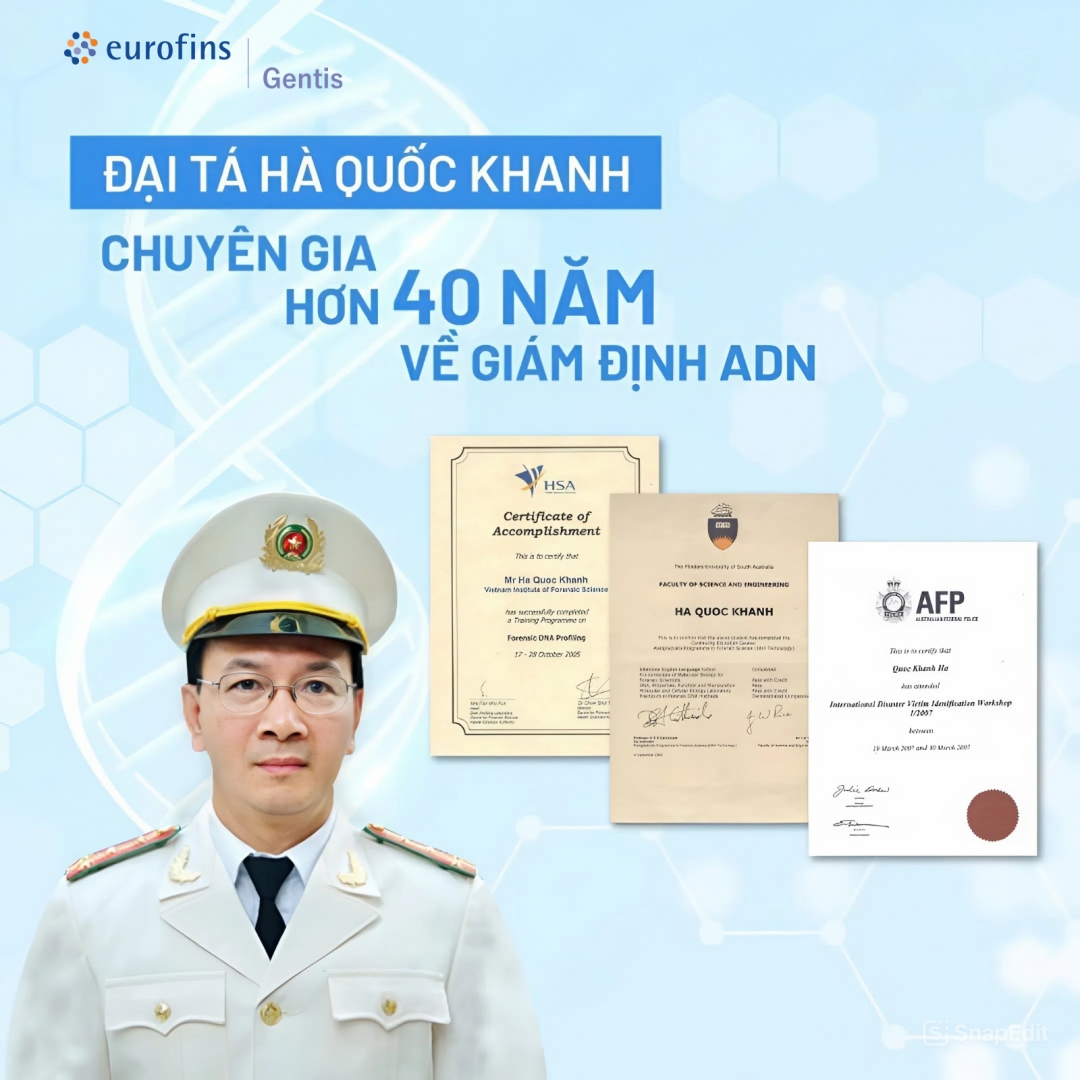 Xét nghiệm ADN thai nhi không xâm lấn tại EUROFINS GENTIS được thẩm định và ký xác nhận kết quả bởi Đại Tá Hà Quốc Khanh - Nguyên Giám đốc Trung tâm Giám định ADN, Viện Phó viện Khoa học hình sự - Bộ Công an.