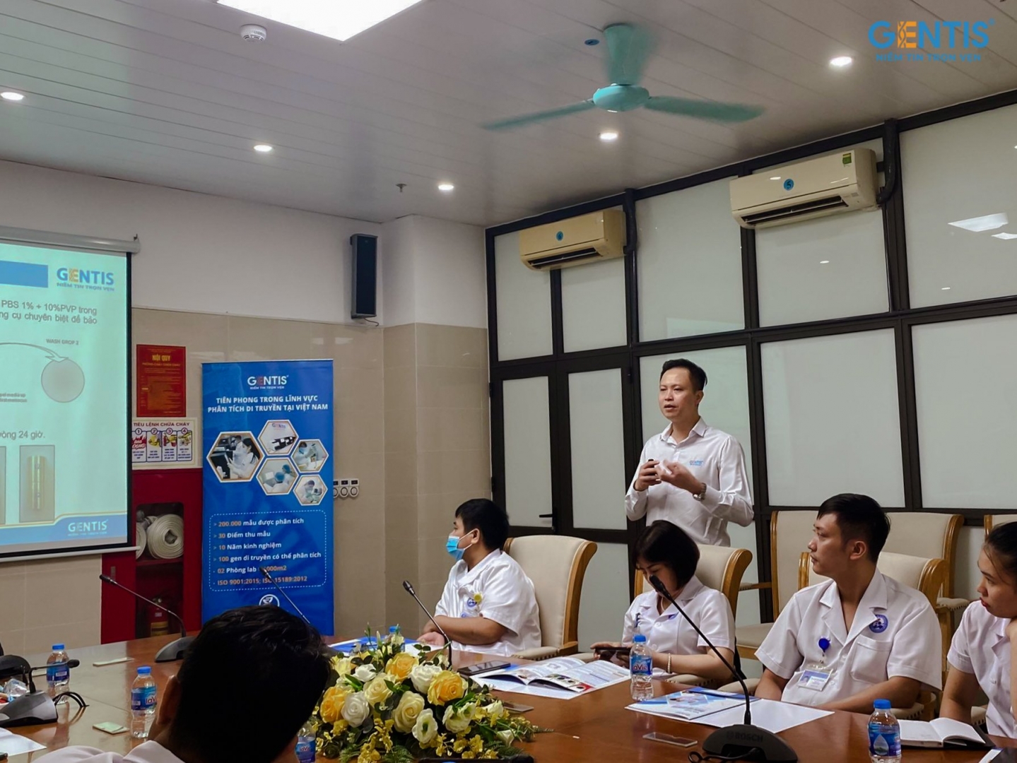 Buổi hội thảo có sự tham gia của gần 20 y bác sĩ thuộc ban lãnh đạo Bệnh viện, đặc biệt trong đó có sự góp mặt của phó trưởng khoa BS CK1 Phan Minh Đức và phó trưởng khoa: BS CK1 Bùi Văn Cảnh với nhiều năm kinh nghiệm trong lĩnh vực hỗ trợ sinh sản. Phía Công ty GENTIS vinh dự có sự tham gia của Giám đốc Trung tâm xét nghiệm - Nguyễn Quang Vinh báo cáo trực tiếp về dịch vụ.
