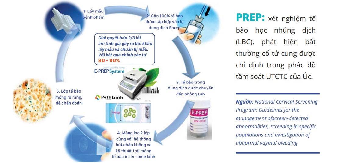 Specimens (cervical smear) will be placed in a vial of Eprep solution to remove impurities (blood, mucus, etc.) by double membrane technology and a vacuum system that smears a thin layer of cells on the slide.