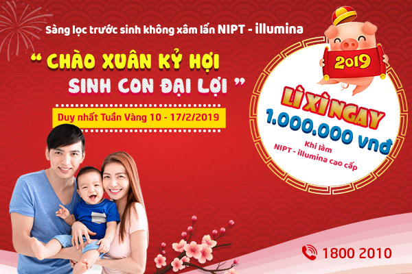 Nhân dịp chào xuân Kỷ Hợi, GENTIS áp dụng chương trình ưu đãi đặc biệt dành cho dịch vụ NIPT - illumina. Theo đó, từ ngày 10 – 17/2/2019, khi đăng ký thực hiện dịch vụ sàng lọc trước sinh không xâm lấn NIPT – illumina cao cấp tại GENTIS các “mẹ bầu” sẽ được “lì xì” ngay 1.000.000 đồng.
