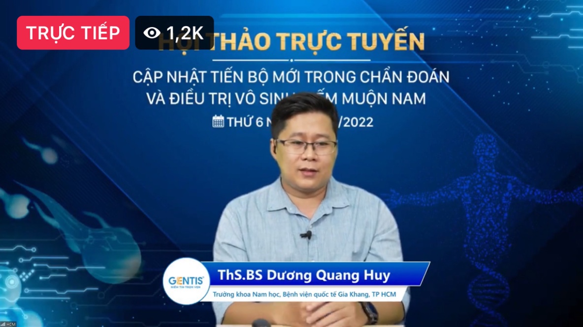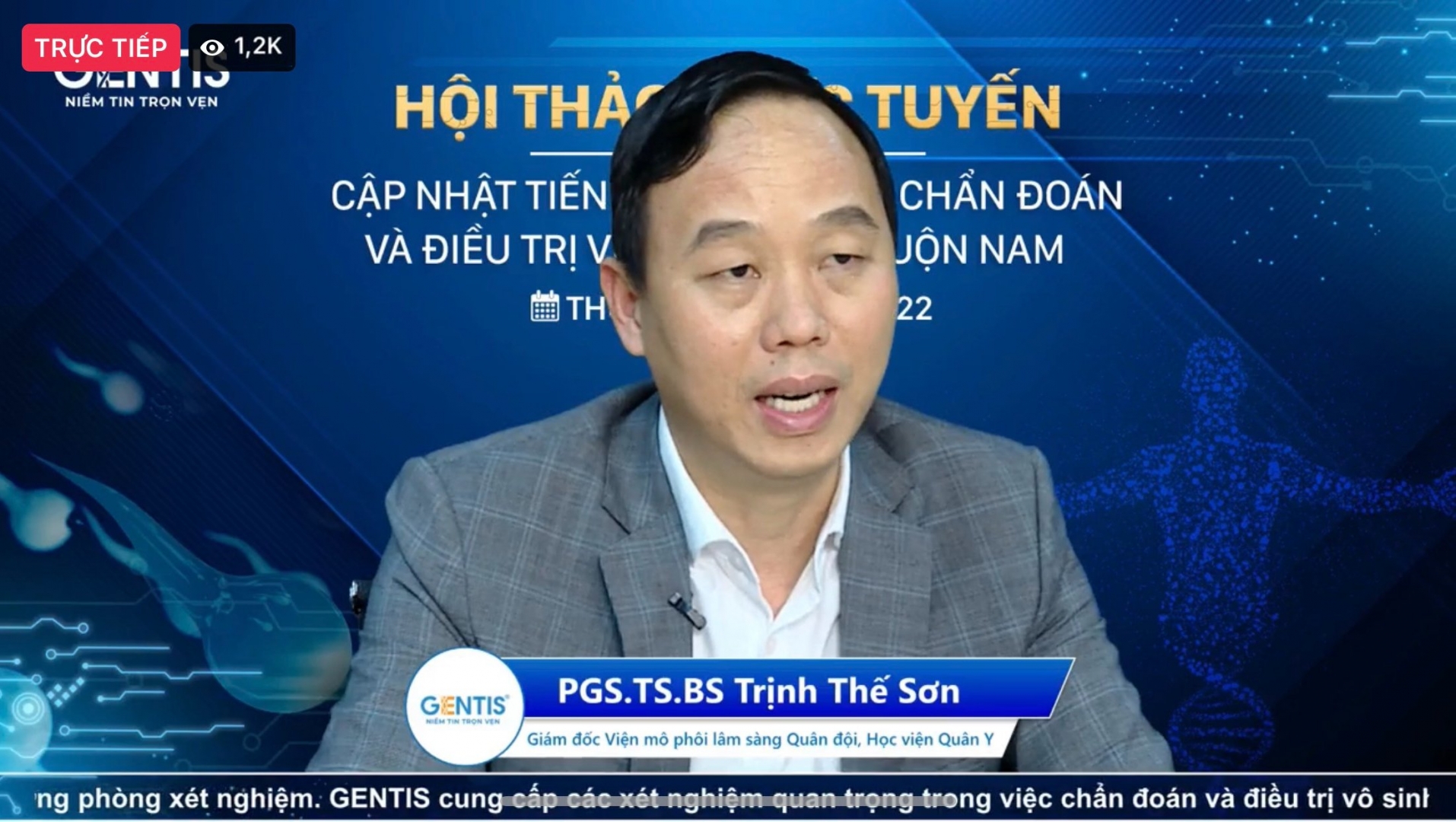 Hội thảo trực tuyến “Cập nhật tiến bộ mới trong chẩn đoán và điều trị vô sinh hiếm muộn nam” được GENTIS tổ chức đã diễn ra thành công với sự tham gia của các chuyên gia nam khoa và xét nghiệm hàng đầu hai miền Bắc - Nam như PGS.TS.BS Trịnh Thế Sơn (Giám đốc Viện mô phôi lâm sàng Quân đội), ThS.BS Dương Quang Huy (Trưởng khoa Nam Học bệnh viện quốc tế Gia Khang), TS Phạm Đình Minh (Giám đốc Trung tâm nghiên cứu và phát triển GENTIS).
