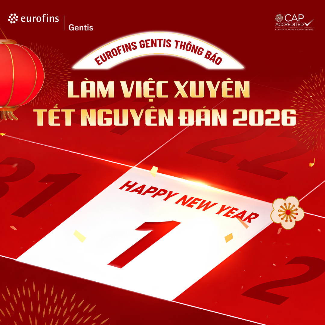 Thấu hiểu ý nghĩa đặc biệt đó, đồng thời xuất phát từ trách nhiệm nghề nghiệp, cam kết đồng hành lâu dài, Eurofins GENTIS trân trọng thông báo vẫn duy trì hoạt động làm việc xuyên suốt dịp Tết Nguyên Đán 2026, nhằm đảm bảo tiến độ, chất lượng dịch vụ, đáp ứng kịp thời nhu cầu của Quý đối tác, Quý khách hàng và Quý chuyên gia trên toàn quốc.
