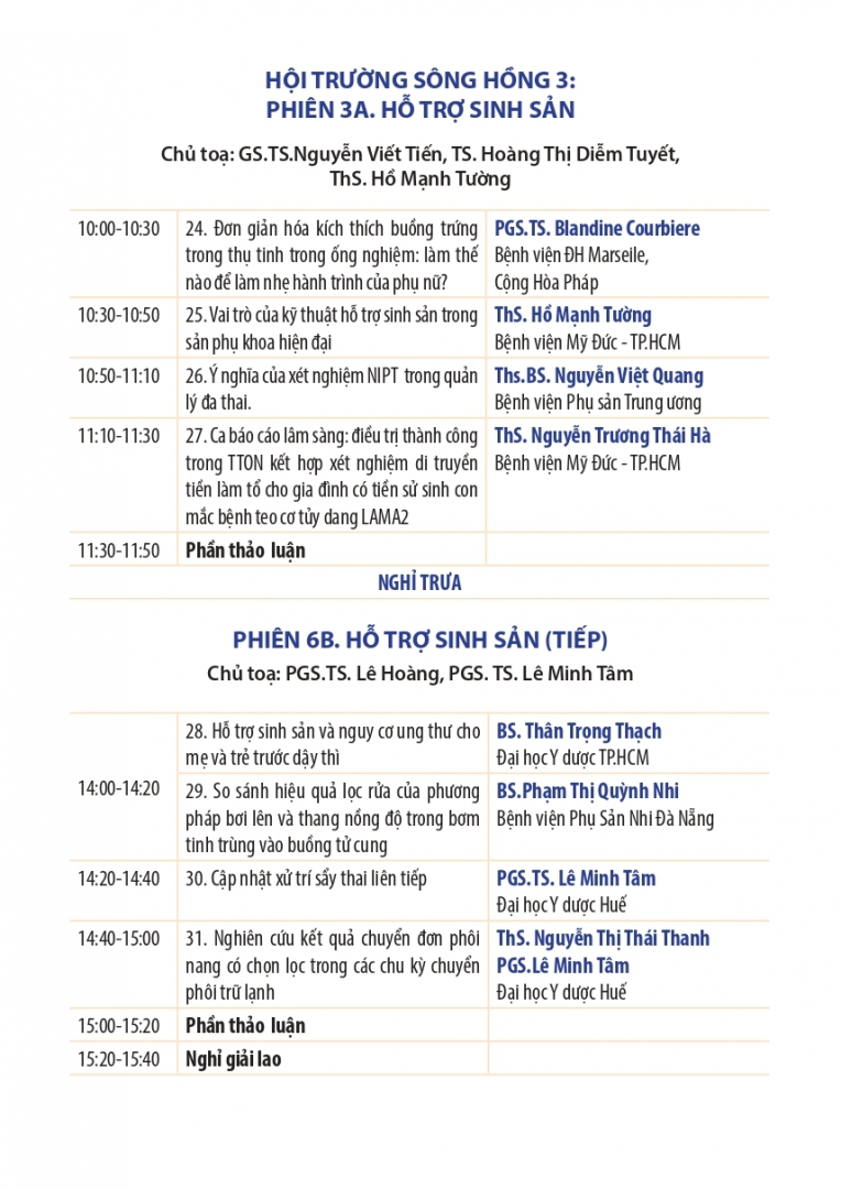 - Phiên 2A: Ung thư phụ khoa - Phiên 3A: Hỗ trợ sinh sản