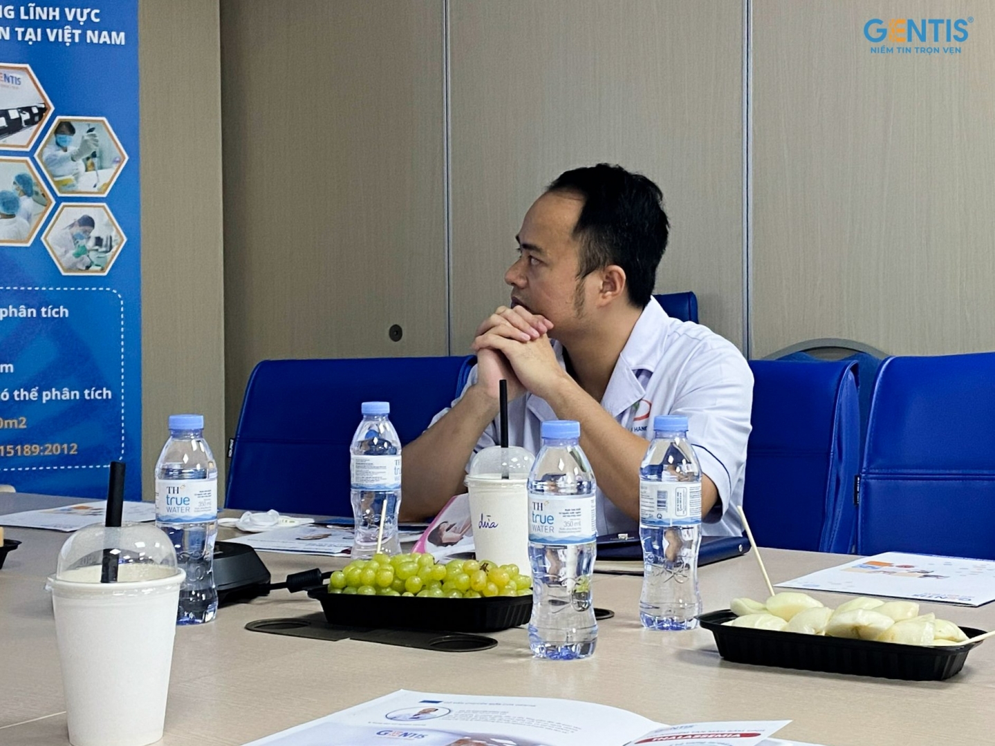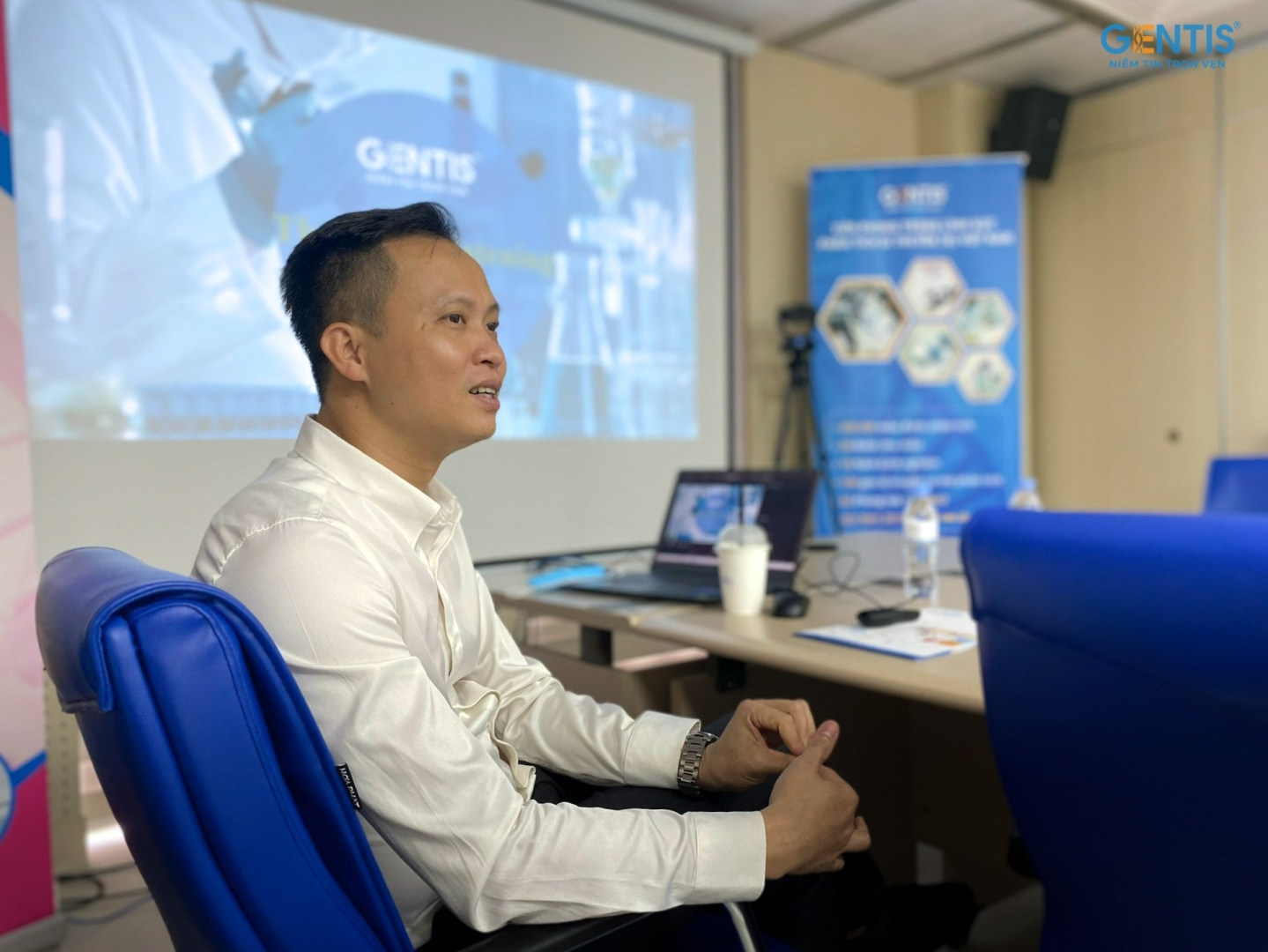 Phía Công ty GENTIS vinh dự cử báo cáo viên dịch vụ là Giám đốc Trung tâm xét nghiệm Nguyễn Quang Vinh và Trưởng phòng Kinh doanh GENTIS Hoàng Thị Thu Hương.