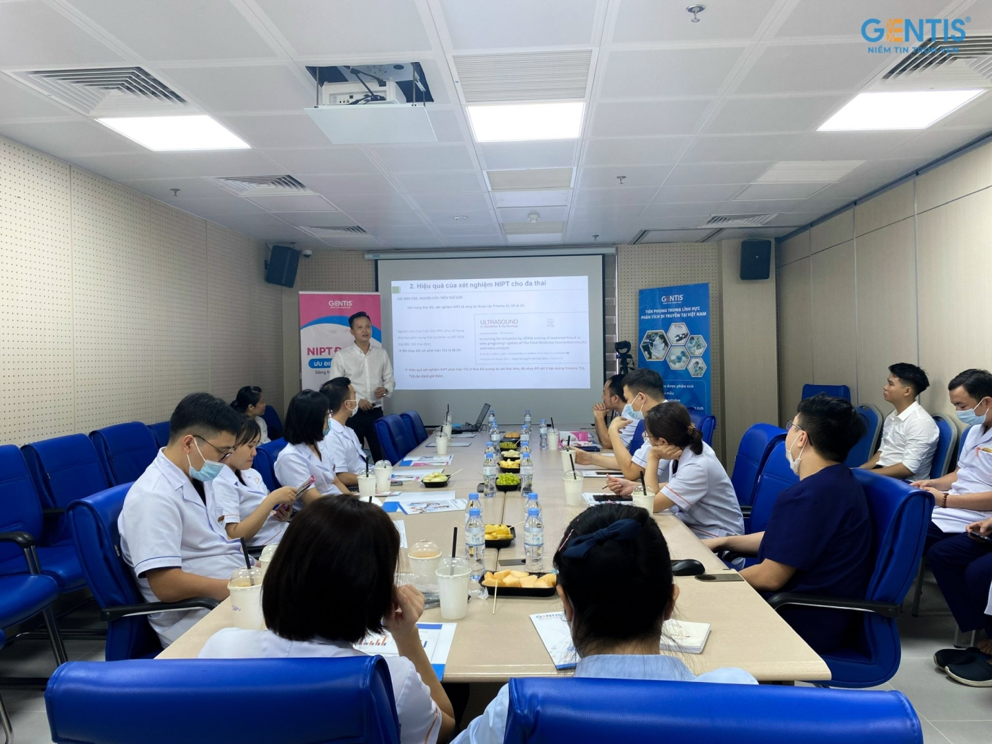 Nối tiếp chuỗi báo cáo về các dịch vụ Hỗ trợ sinh sản, Công ty GENTIS đã triển khai buổi chia sẻ với Bệnh viện Nam học và Hiếm muộn Hà Nội để cập nhật tiến bộ mới trong xét nghiệm NIPT hiện nay. Buổi báo cáo có sự tham gia của hơn 15 y bác sĩ thuộc ban lãnh đạo, trưởng phó khoa và bác sĩ đang công tác tại Bệnh viện. Đặc biệt là sự tham dự của Thạc sĩ, Chuyên viên phôi học Nguyễn Minh Đức – Trưởng Labo Hỗ trợ sinh sản (IVF).