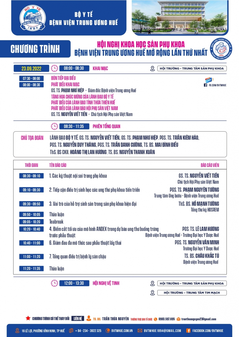- Địa điểm: Hội trường Trung tâm Sản Phụ khoa, BVTW Huế
