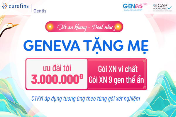 Chương trình ưu đãi GenEva mừng năm mới 2026 áp dụng cho các mẹ bầu có nhu cầu thực hiện xét nghiệm sàng lọc trước sinh NIPT và đăng ký dịch vụ trong thời gian diễn ra chương trình theo quy định của Eurofins Gentis.