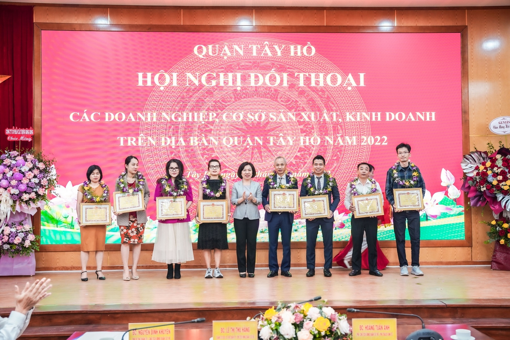 Tại phần cuối của Hội nghị, Ủy ban nhân dân Quận Tây Hồ đã đọc quyết định Tôn vinh và khen thưởng các doanh nghiệp có thành tích tiêu biểu trong năm 2022 trên địa bàn quận