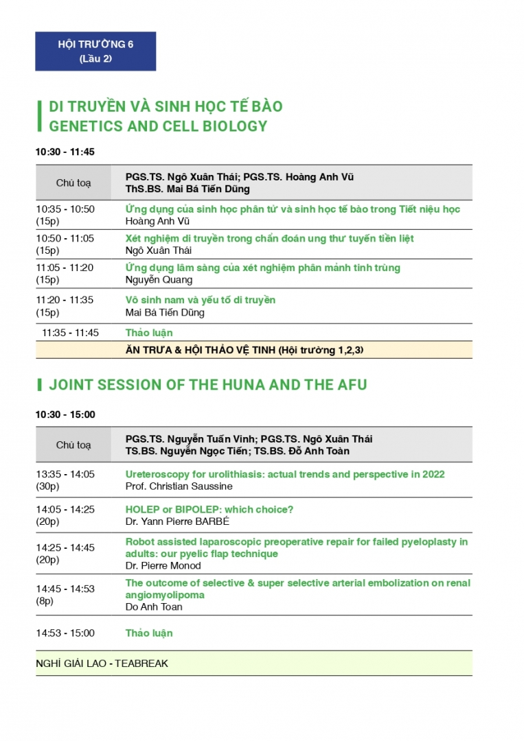 Một số báo cáo tiêu biểu trong phiên "Di truyền và sinh học tế bào" và "Nam giới học" của các Phó giáo sư, Tiến sĩ, Bác sĩ dày dặn kinh nghiệm trong lĩnh vực nam khoa như:
