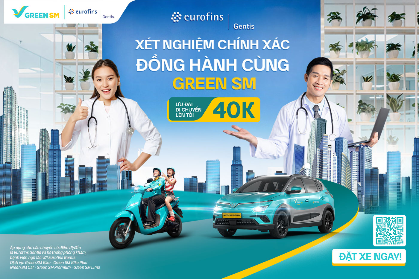 Giờ đây, chỉ cần vài thao tác đặt xe đơn giản trên ứng dụng Green SM, bạn đã có thể nhanh chóng đến với hệ thống trung tâm xét nghiệm của Eurofins GENTIS cũng như các phòng khám, bệnh viện đối tác. Không còn nỗi lo tìm đường, kẹt xe hay chi phí phát sinh, mọi thứ đã được tối ưu để bạn tập trung chăm sóc sức khỏe của mình và gia đình.