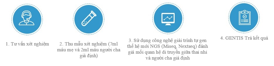 Nguyên lý: Khi mang thai, trong máu của người mẹ có mặt các ADN tự do của thai nhi – cell free fetal DNA (cffDNA). Với công nghệ giải trình tự gen cùng các thuật toán độc quyền được nghiên cứu và cấp phép, GENTIS phân tích ADN tự do của thai nhi trong máu mẹ hỗ trợ xác định mối quan hệ huyết thống cha-con trước sinh không cần xâm lấn.