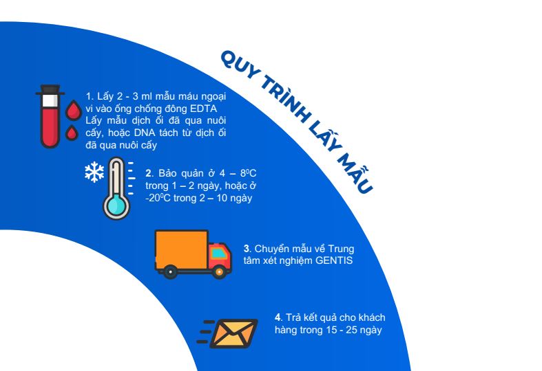 Xét nghiệm sử dụng phương pháp tách chiết DNA từ mẫu máu ngoại vi, sau đó thực hiện 2 phương pháp để đánh giá trạng thái của các đột biến: