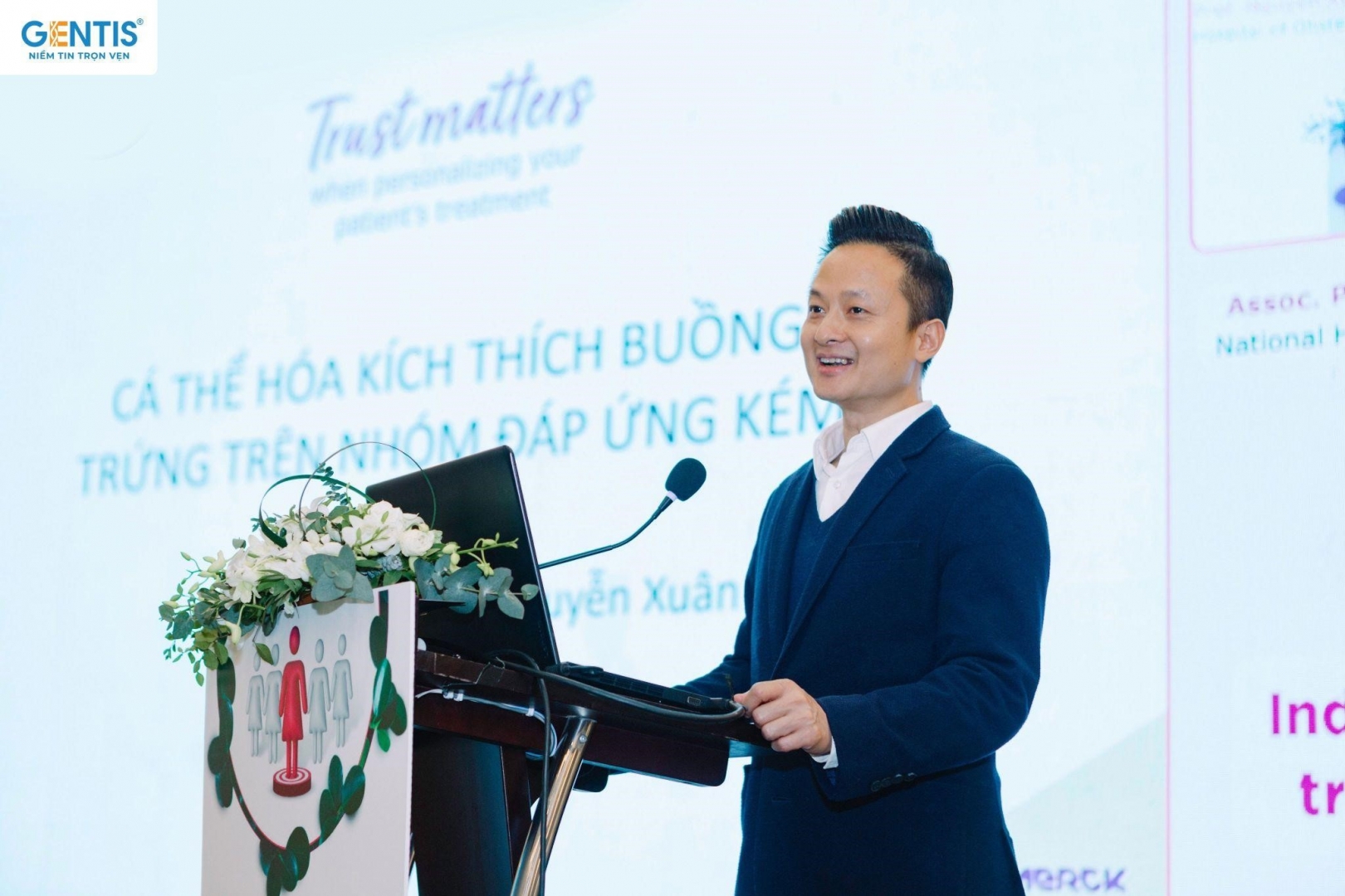 Prof. TS.BS Nguyen Xuan Hoi, which received much attention and appreciation from many people. PGS Hoi said that FSH receptor gene polymorphism test combined with other indicators (AMH, AFC, maternal age ...) is very helpful for doctors to personalize the ovulation regimen.