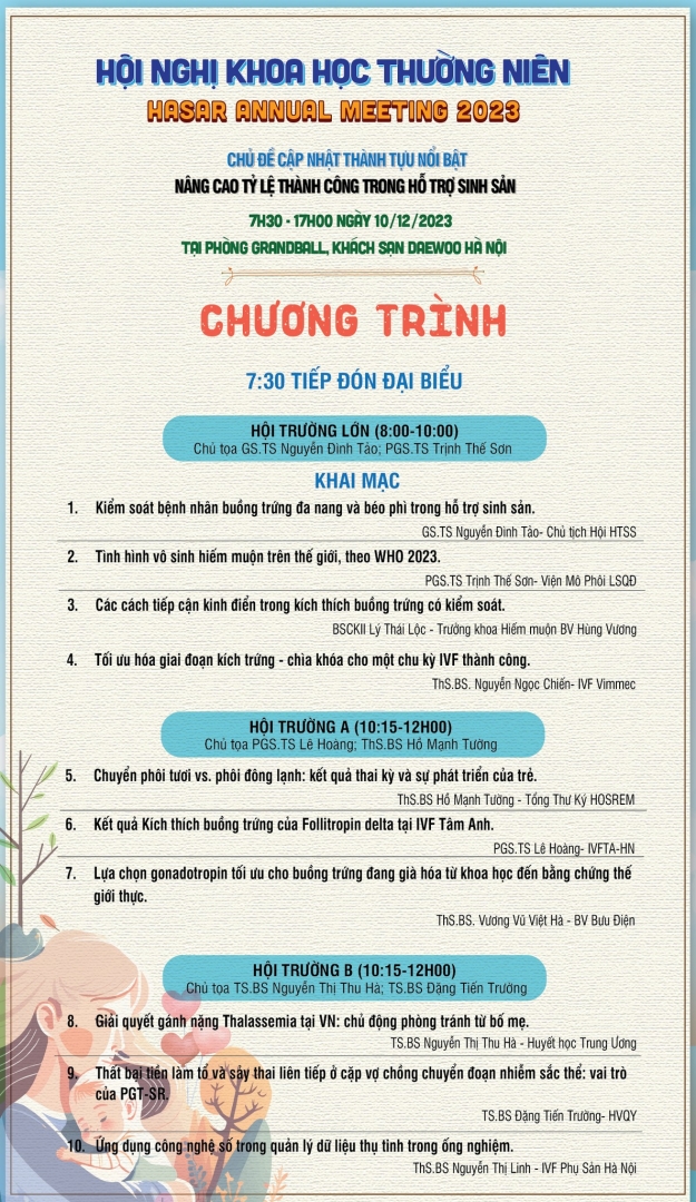 This special and engaging conference will feature high-quality presentations from experienced domestic and international experts. Attendees will include the Executive Committee of the Hanoi Society of Assisted Reproduction, embryology experts, lab directors, clinical doctors, leaders of leading ART centers in Vietnam, and international ART experts.