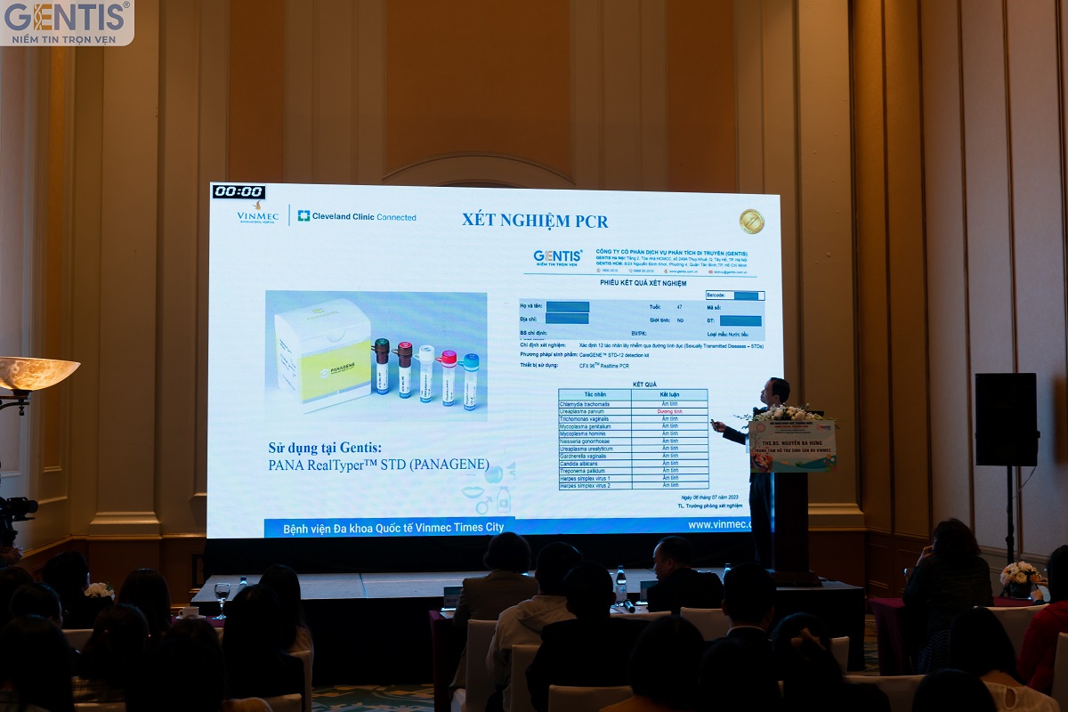 In his presentation, Doctor Hung also included information about GENTIS's STDs combo test for 12 pathogens, utilizing Realtime PCR technology (Caregene). He expressed high praise for GENTIS's STDs testing, recognizing its ability to optimize diagnosis accuracy for doctors and the costs for patients.