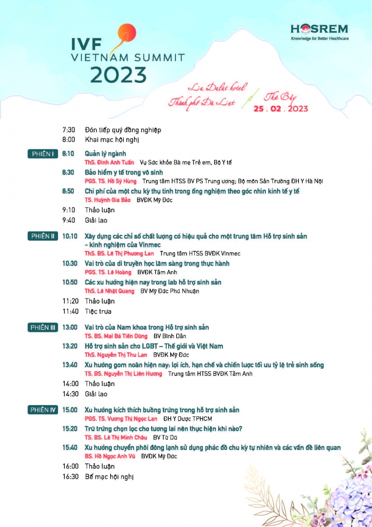 Following the previous conference, in 2023, the 3rd IVF Summit was successfully held on February 25 in Da Lat city, attracting nearly 300 delegates with 4 official sessions and 12 reports presented by experts. from leading units and hospitals such as the Department of Maternal and Child Health Ministry of Health, Central Obstetrics and Gynecology Hospital, Tu Du Hospital, Binh Dan Hospital, Tam Anh General Hospital, etc. Attendees to the conference are limited to 1. Leaders of major hospitals, reproductive support centers to be updated with practical knowledge.