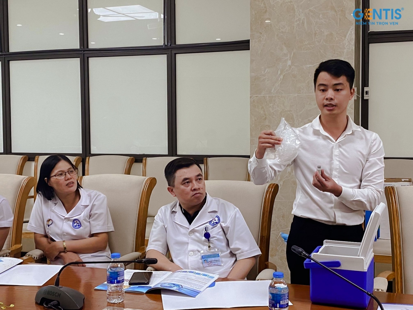 Buổi hội thảo có sự tham gia của gần 20 y bác sĩ thuộc ban lãnh đạo Bệnh viện, đặc biệt trong đó có sự góp mặt của phó trưởng khoa BS CK1 Phan Minh Đức và phó trưởng khoa: BS CK1 Bùi Văn Cảnh với nhiều năm kinh nghiệm trong lĩnh vực hỗ trợ sinh sản. Phía Công ty GENTIS vinh dự có sự tham gia của Giám đốc Trung tâm xét nghiệm - Nguyễn Quang Vinh báo cáo trực tiếp về dịch vụ.