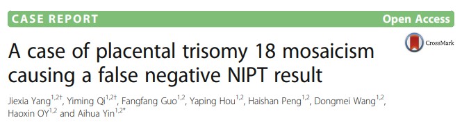 [7] Yang J, Qi Y, Guo F, et al. A case of placental trisomy 18 mosaicism causing a false negative NIPT result. Mol Cytogenet. 2017;10:40. Published 2017 Oct 27. doi:10.1186/s13039-017-0341-5