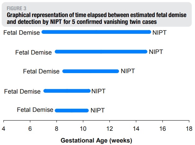 The presence of VT can affect NIPT test results, studies have shown that cfDNA from aborted twins can still be present in the mother's plasma at least 8 weeks after the termination of pregnancy and possibly up to 15 weeks (Figure 2). We know that chromosomal abnormalities are a major cause of miscarriage, and trisomy can be the cause of VT, which in turn can lead to false-positive NIPT results.