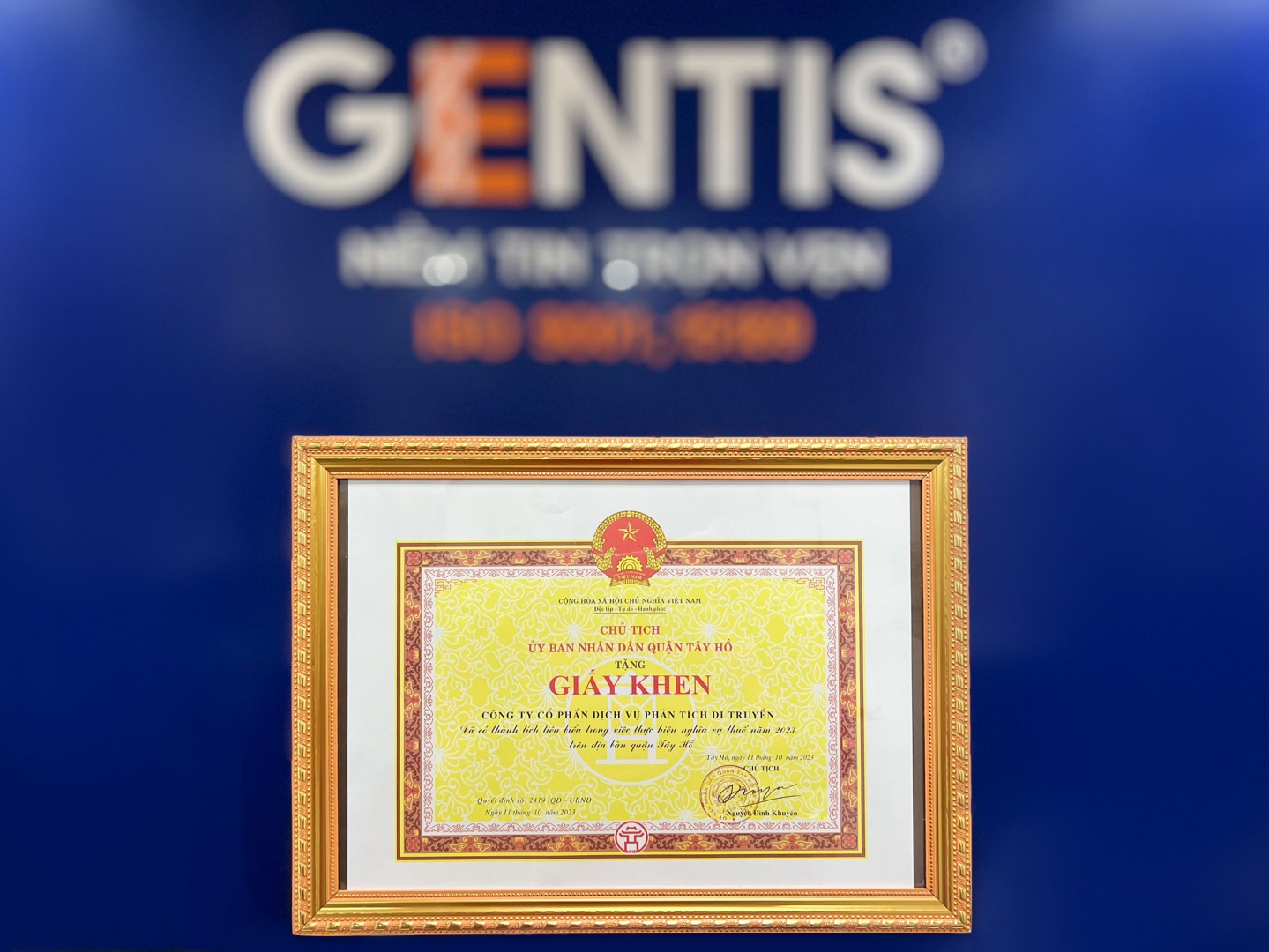 Also at the conference, GENTIS was proud to be one of the 40 businesses in the district recognized and awarded a Certificate of Merit by the Chairman of the People's Committee of Tay Ho District.