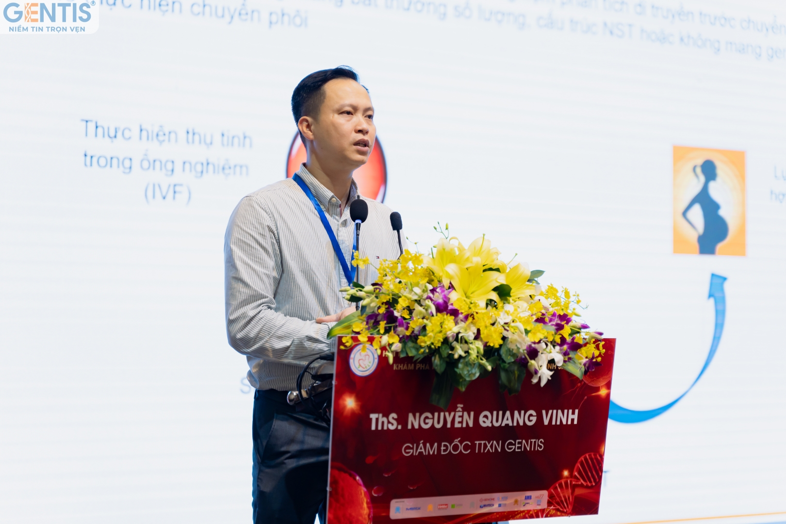 MSc. Nguyen Quang Vinh (Director of GENTIS Laboratory Center) presents on the topic "Application of PGT-Max1 test in screening embryos carrying common microdeletions."
