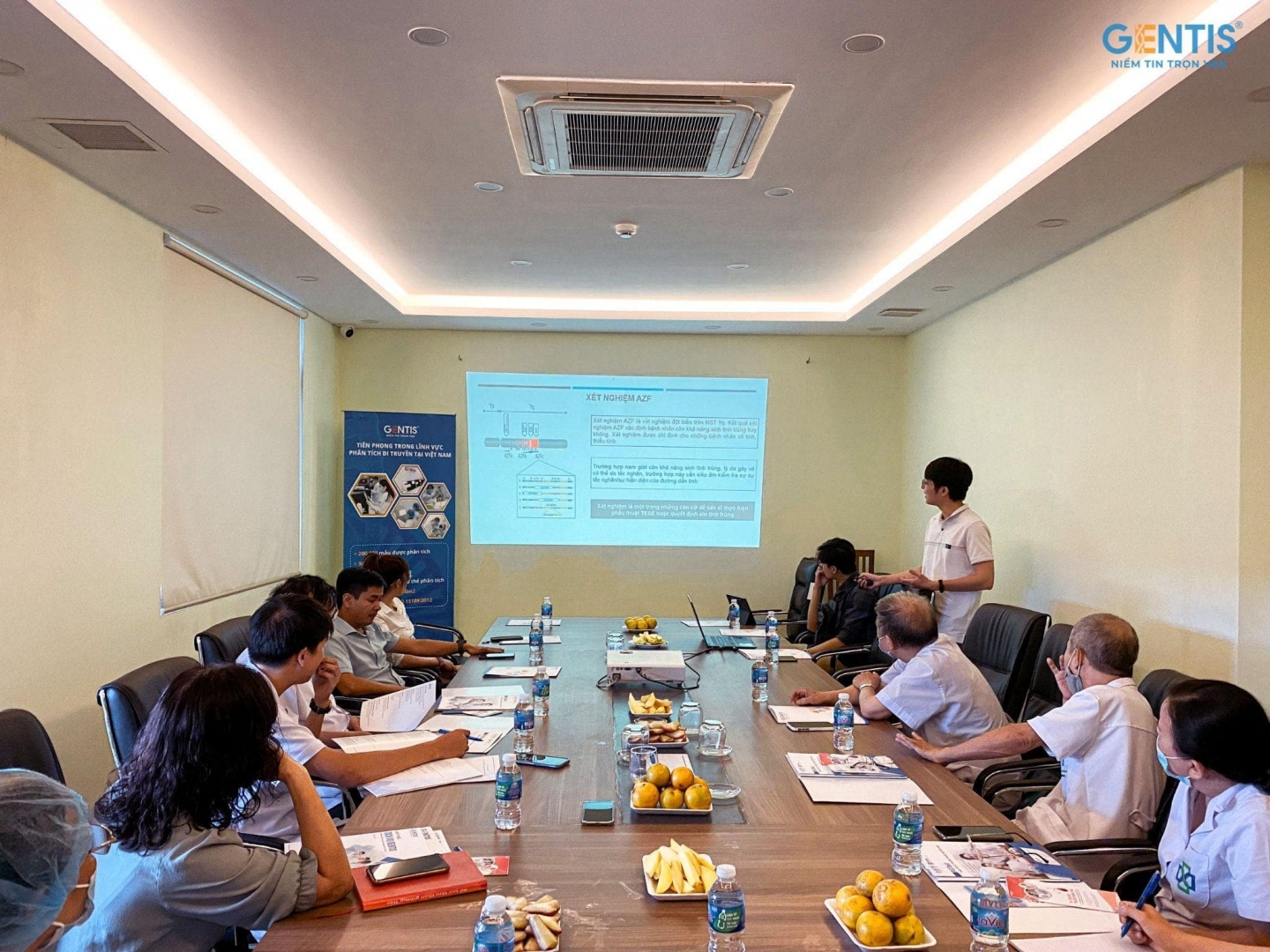 Thông qua buổi thảo luận, Chuyên viên sản phẩm của GENTIS đã chia sẻ tổng quát về các nhóm dịch vụ hiện hành của công ty như: xét nghiệm sản khoa (Sàng lọc trước sinh NIPT, Tầm soát ung thư HPV-DNA,...),  xét nghiệm nam khoa (Phân mảnh tinh trùng, lệch bội tinh trùng,...), xét nghiệm di truyền (Bệnh Thalassemia, hội chứng tăng đông Thrombophila…), xét nghiệm ADN huyết thống và các xét nghiệm khác. Bên cạnh đó, cách thức thu mẫu và chuyển mẫu về công ty cũng được DS Nguyễn Đình Mạnh đào tạo rõ ràng, để từ đó trao đổi được phương thức phù hợp cho hai bên khi triển khai dịch vụ.