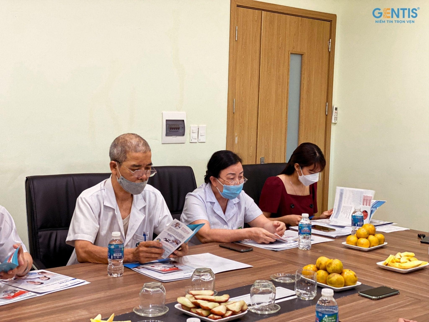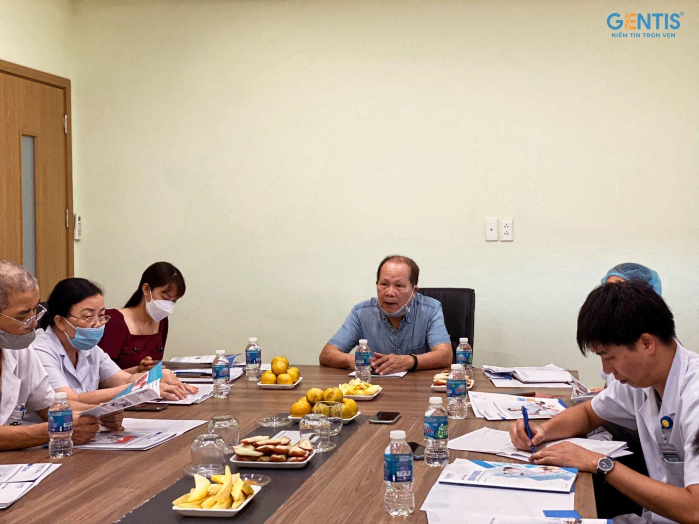 Phản hồi lại với Bệnh viện, DS Nguyễn Đình Mạnh và bộ phận Kinh doanh đã chia sẻ về các hướng hỗ trợ cho Bệnh viện về quy trình lấy mẫu, gửi mẫu và trả kết quả. GENTIS là đơn vị đã triển khai hợp tác với rất nhiều bệnh viện, phòng khám trên cả nước, đặc biệt là sự hỗ trợ tận tình từ việc cung cấp dụng cụ thu mẫu, phương thức lấy mẫu đến hỗ trợ bệnh viện hợp tác cùng các bệnh viện tuyến trên như BV Sản Trung ương, BV Bưu Điện…