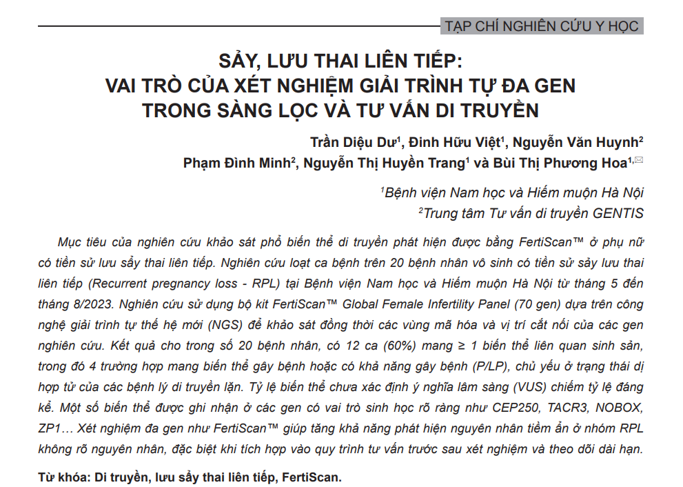 [meta_description] => Recently, Eurofins GENTIS and the Hanoi Hospital of Andrology and Infertility officially published the results of their scientific study evaluating the role of multigene sequencing (NGS) — specifically the FertiScan™ panel — in identifying genetic causes
