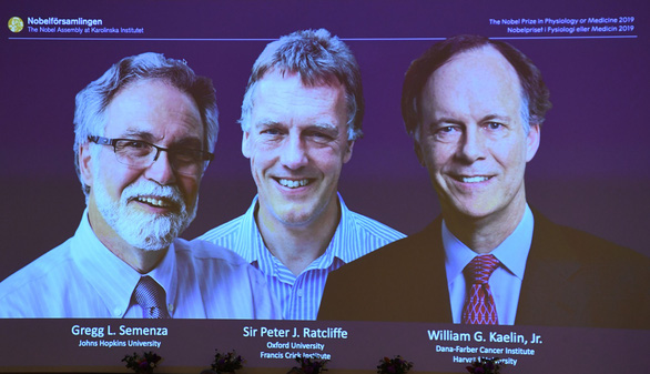 Giải thưởng chia đều cho ba nhà khoa học Peter Ratcliffe thuộc Viện Francis Crick tại London (Anh), William G Kaelin thuộc Đại học Harvard (Mỹ) và Gregg L Semenza thuộc Đại học Hopkins (Mỹ).