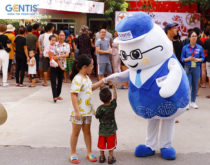Chú Mascot GENTIS đang chơi đùa với các em nhỏ