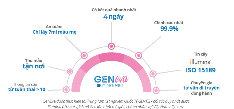 GenEva (NIPT’S Illumina) là một xét nghiệm sàng lọc. Kết quả nên được xác định bằng xét nghiệm chẩn đoán (sinh thiết gai nhau hoặc chọc dò nước ối) trước khi đưa ra bất kỳ quyết định quản lý thai nghén nào.