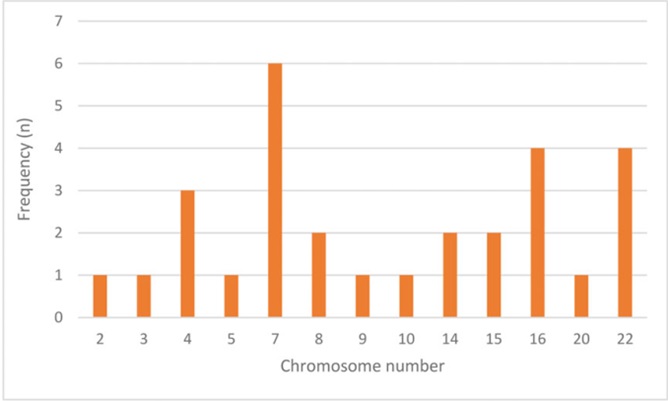 - Diễn ra ở các nhiễm sắc thể số: 1, 2, 3, 4, 5, 6, 7 8, 9, 10, 11, 12, 14, 15, 16, 17, 19, 20, 22.