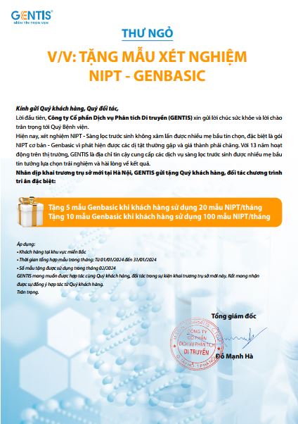 - Tặng 10 mẫu xét nghiệm NIPT - Genbasic khi khách hàng sử dụng 100 mẫu NIPT/ tháng
