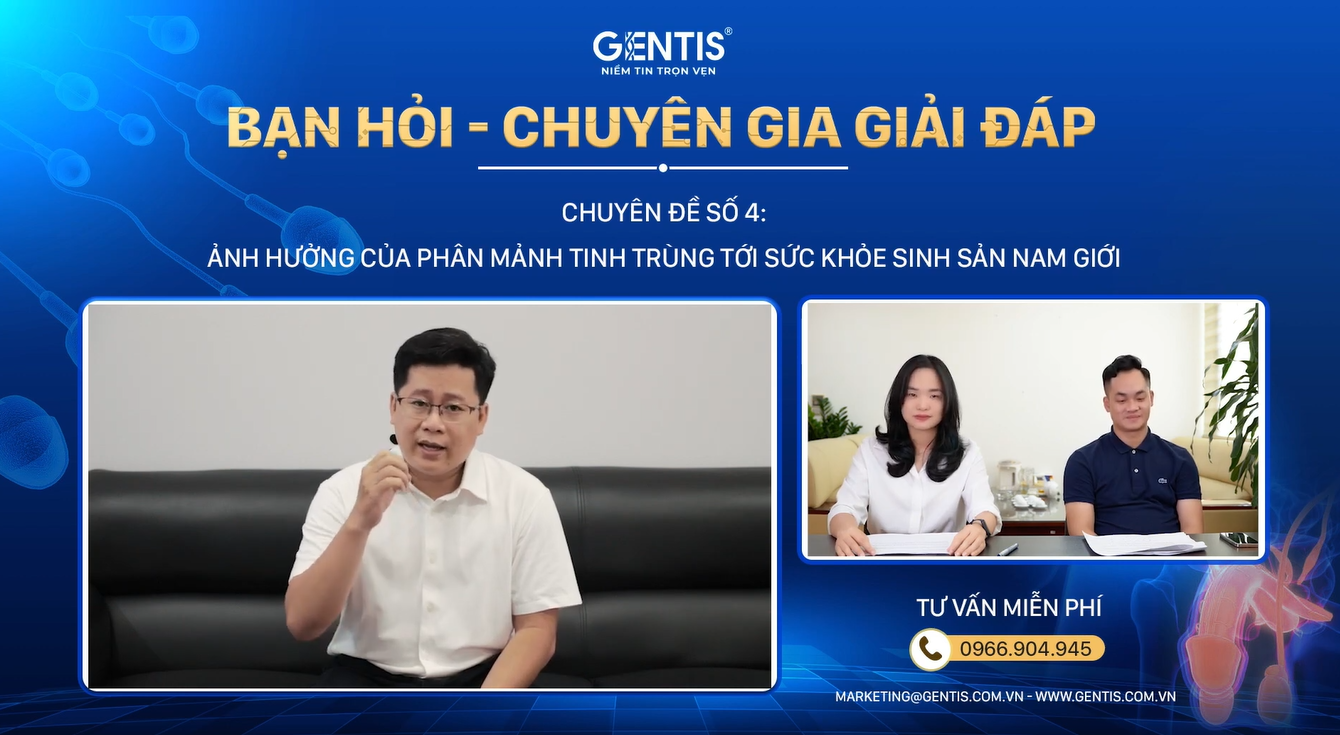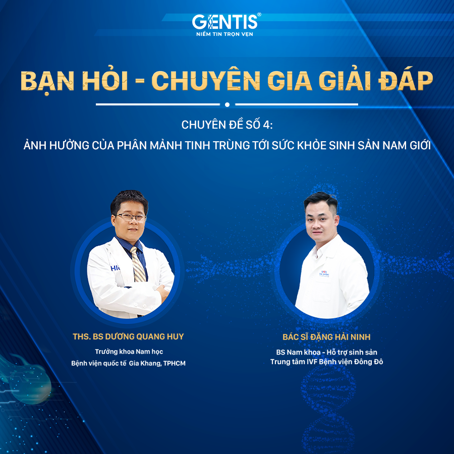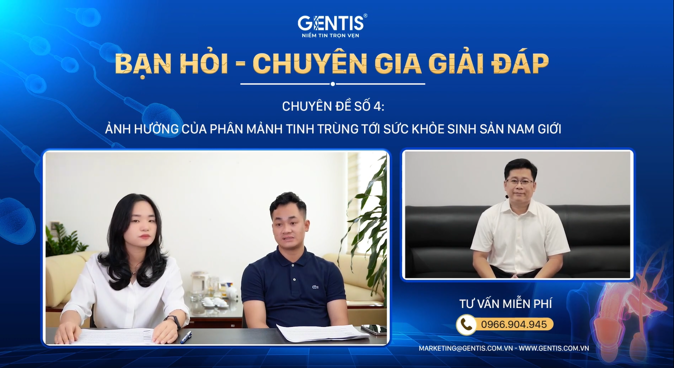 Chương trình Bạn hỏi - Chuyên gia giải đáp về lĩnh vực nam khoa sau 3 số phát sóng đầu tiên đã nhận được rất nhiều sự hưởng ứng cùng phản hồi tích cực từ phía khán giả gửi về GENTIS. Tiếp nối thành công chuỗi chương trình, trong chuyên đề số 4 này, GENTIS hân hạnh mời 2 chuyên gia với kiến thức sâu rộng và nhiều năm kinh nghiệm thực tế lâm sàng trong lĩnh vực Nam khoa là BS Đăng Hải Ninh (Bác sĩ Nam khoa - Hỗ trợ sinh sản của Trung tâm IVF Bệnh viện Đông Đô - Hà Nội) và Ths.Bs Dương Quang Huy (Trưởng Trung tâm Nam Học Bệnh viện quốc tế Gia Khang - TP.HCM).