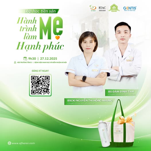 Thấu hiểu những băn khoăn ấy, Eurofins GENTIS tự hào đồng hành cùng Bệnh viện Nam học và Hiếm muộn Hà Nội (AF HANOI) tổ chức Lớp học Tiền sản - Hành trình làm mẹ hạnh phúc, mang đến cho mẹ bầu không gian trang bị kiến thức và kết nối đầy yêu thương.