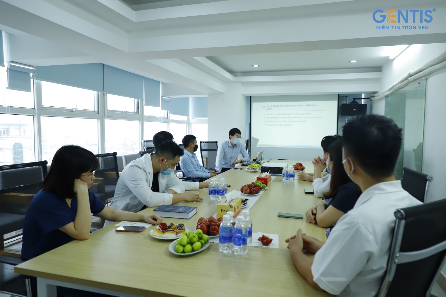 Tại buổi trao đổi, Ds. Nguyễn Đình Mạnh - Chuyên viên quản lý sản phẩm GENTIS đã có phần báo cáo chi tiết về các xét nghiệm nam khoa hiện nay được sử dụng rộng rãi và có ý nghĩa lớn trong hỗ trợ sinh sản nam giới. Thông qua bài báo cáo, các bác sĩ của BV Đông Đô đã có thêm những thông tin hữu ích về tầm quan trọng của xét nghiệm gene trong việc chẩn đoán và định hướng điều trị.