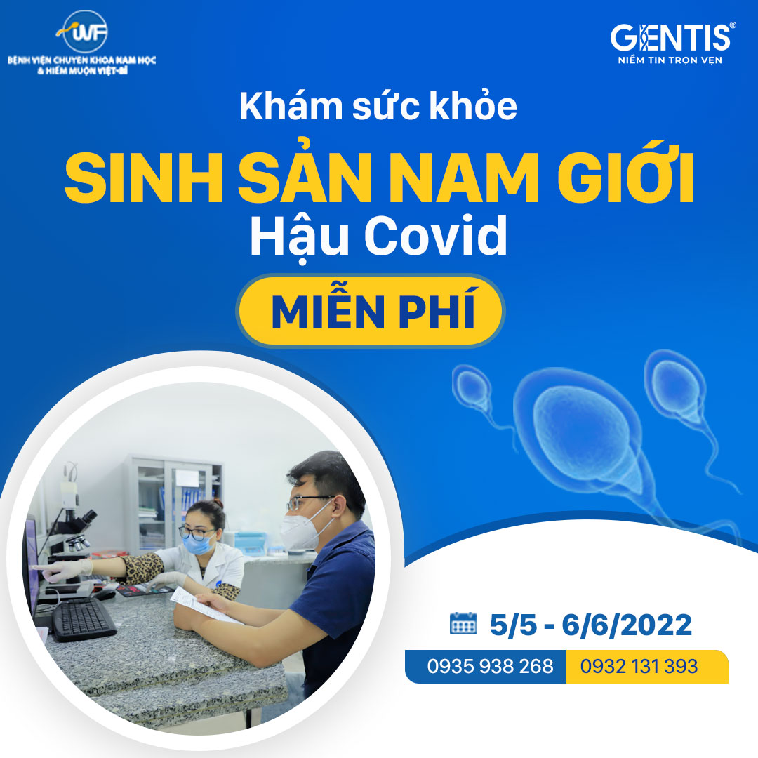 Nhiều nghiên cứu trên thế giới đã chứng minh rằng virus SARS-CoV-2 sau khi nhiễm vào cơ thể có khả năng khiến tinh trùng của nam giới giảm sút cả chất lượng và số lượng, ảnh hưởng đến đời sống tâm sinh lý cũng như mong muốn làm cha của nhiều người.Thấu hiểu điều này, GENTIS phối hợp cùng Bệnh viện chuyên khoa Nam học & Hiếm muộn Việt - Bỉ triển khai Chương trình “Tầm soát sức khỏe sinh sản nam giới hậu Covid-19” nhằm hỗ trợ các anh lấy lại phong độ và bản lĩnh đàn ông với mức ưu đãi hấp dẫn (giảm đến 50%) khi đăng ký trọn gói khám Nam khoa hậu Covid.