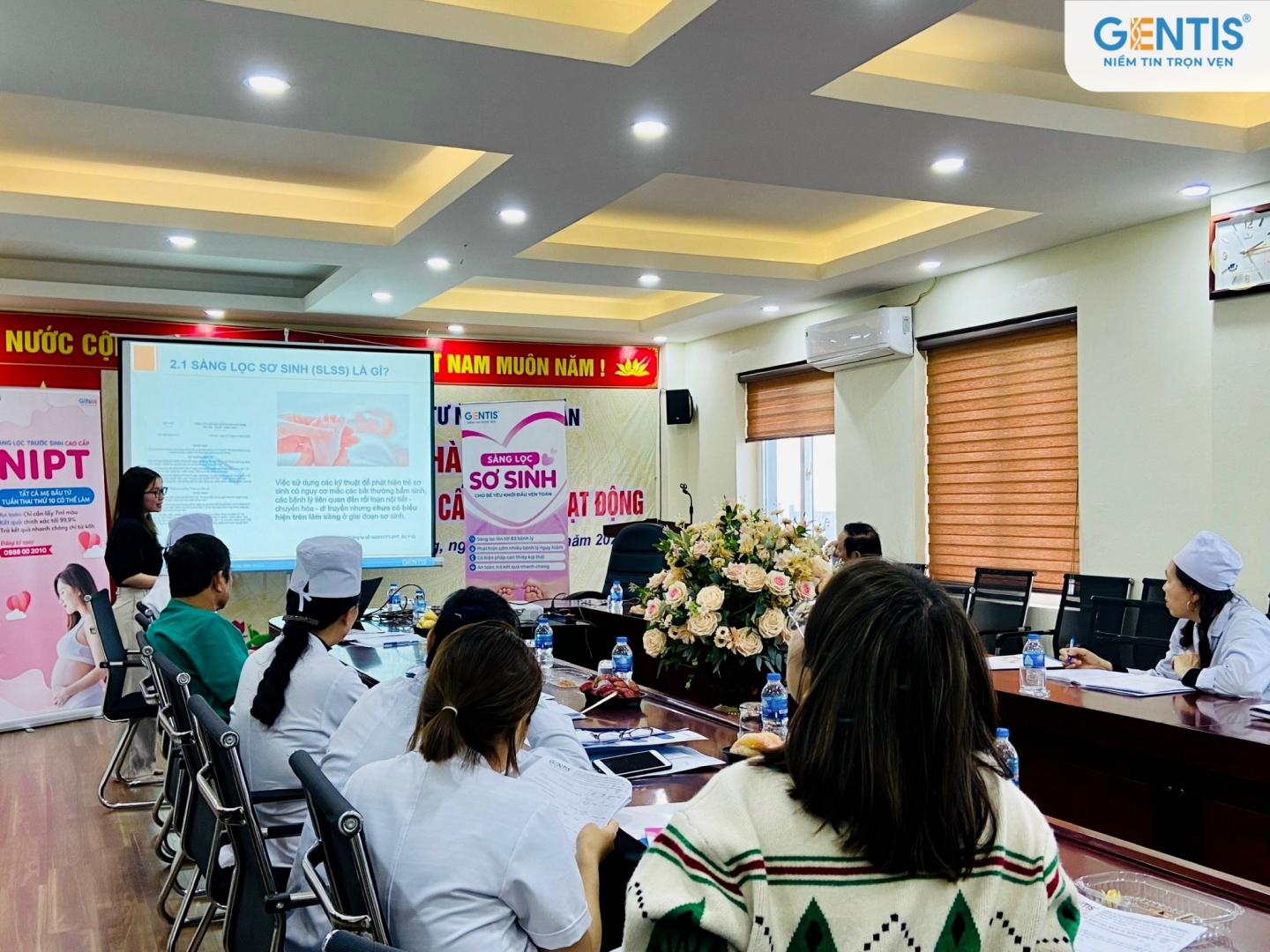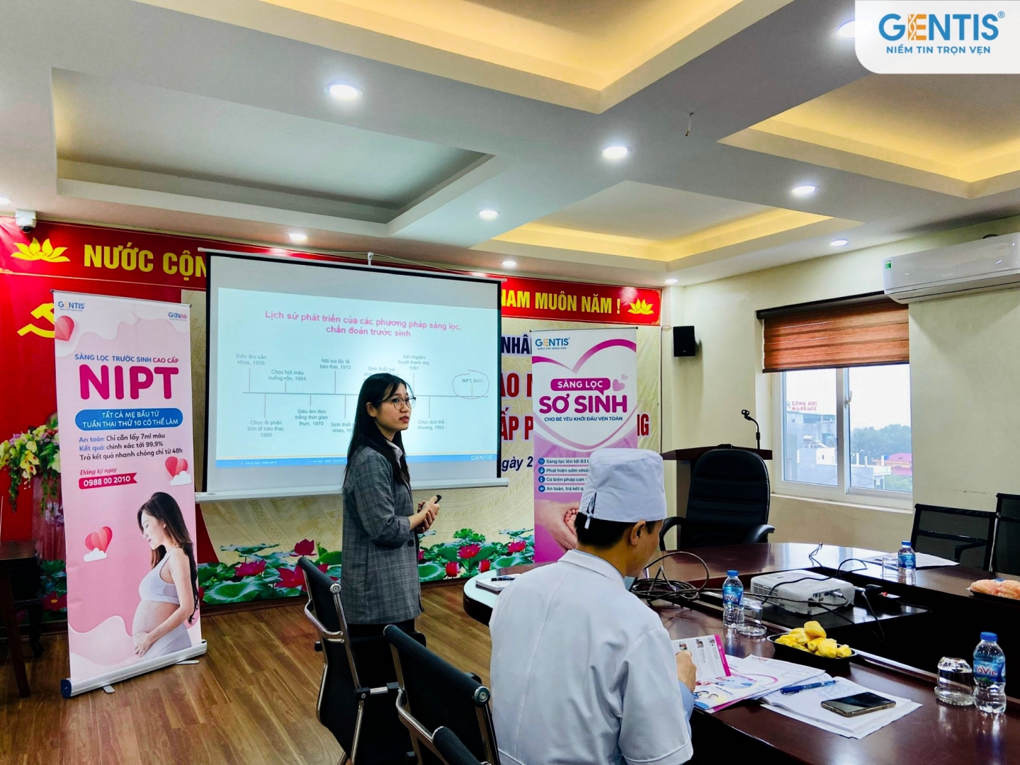 Trong buổi hội thảo, báo cáo viên Lê Thị Hồng Nhung đã có phần giới thiệu chi tiết về xét nghiệm sàng lọc trước sinh không xâm lấn (NIPT) tại GENTIS. Qua đó chị Nhung cho biết NIPT bắt đầu được đưa vào ứng dụng lâm sàng trong sàng lọc dị tật thai nhi từ năm 2011. NIPT có thể sàng lọc và phát hiện được nhiều hội chứng dị tật bẩm sinh và cung cấp được các thông tin chính xác về tình trạng sức khỏe của thai nhi. Phương pháp này được thực hiện một cách nhanh chóng, dễ dàng với kết quả có độ chính xác hơn 99%. Ngoài ra mẹ bầu không cần phải thực hiện chọc ối mà chỉ cần lấy 7ml máu tĩnh mạch, điều này giúp làm giảm tỷ lệ sảy thai, nhiễm trùng ối hoặc các bệnh truyền nhiễm do chọc ối. Quy trình xét nghiệm NIPT tại Gentis đã được công nhận ISO 15189:2012 do Phòng quản lý chất lượng của BOA cấp, đây là tiêu chuẩn quy định các yêu cầu về năng lực và chất lượng đối với các phòng xét nghiệm y tế.