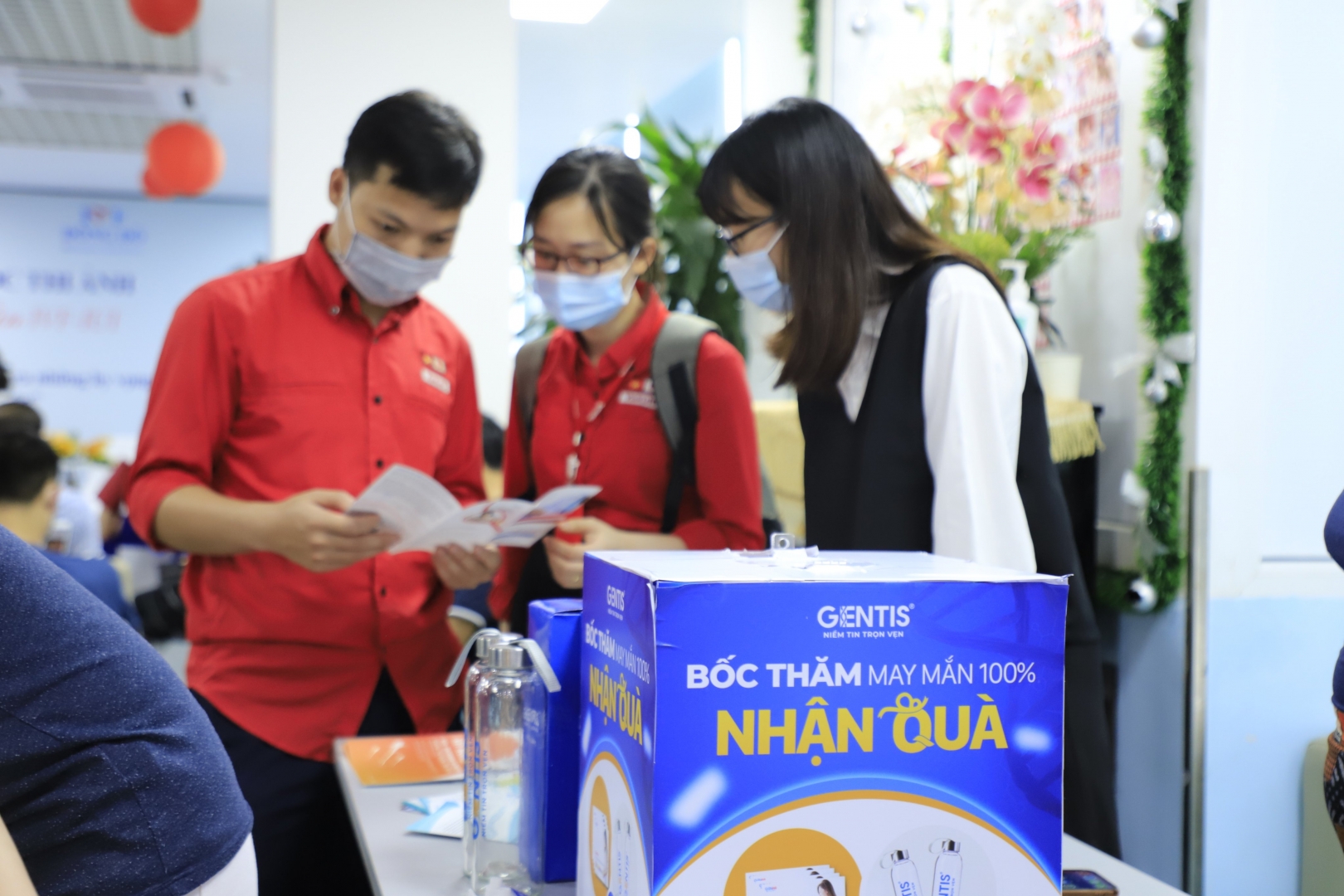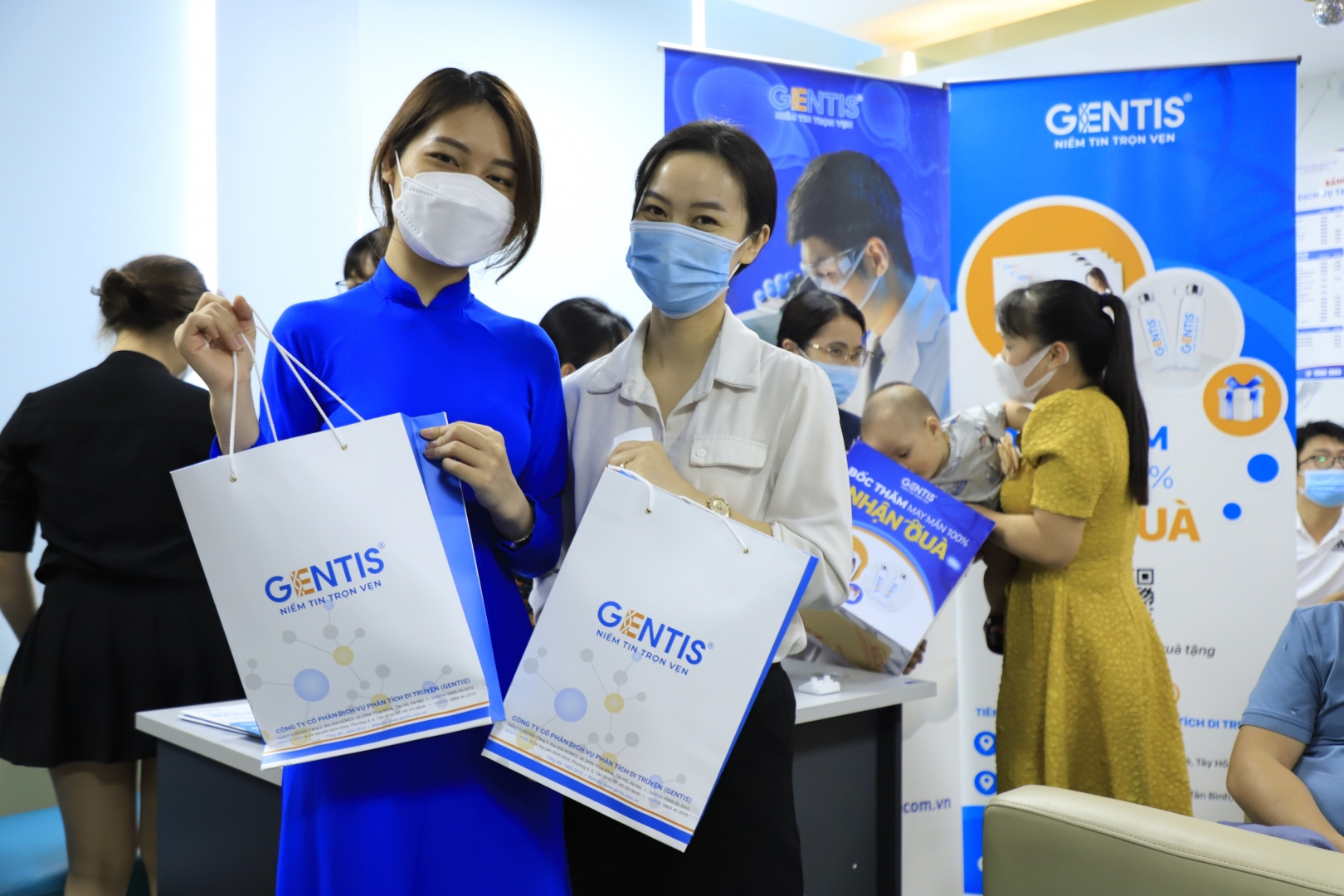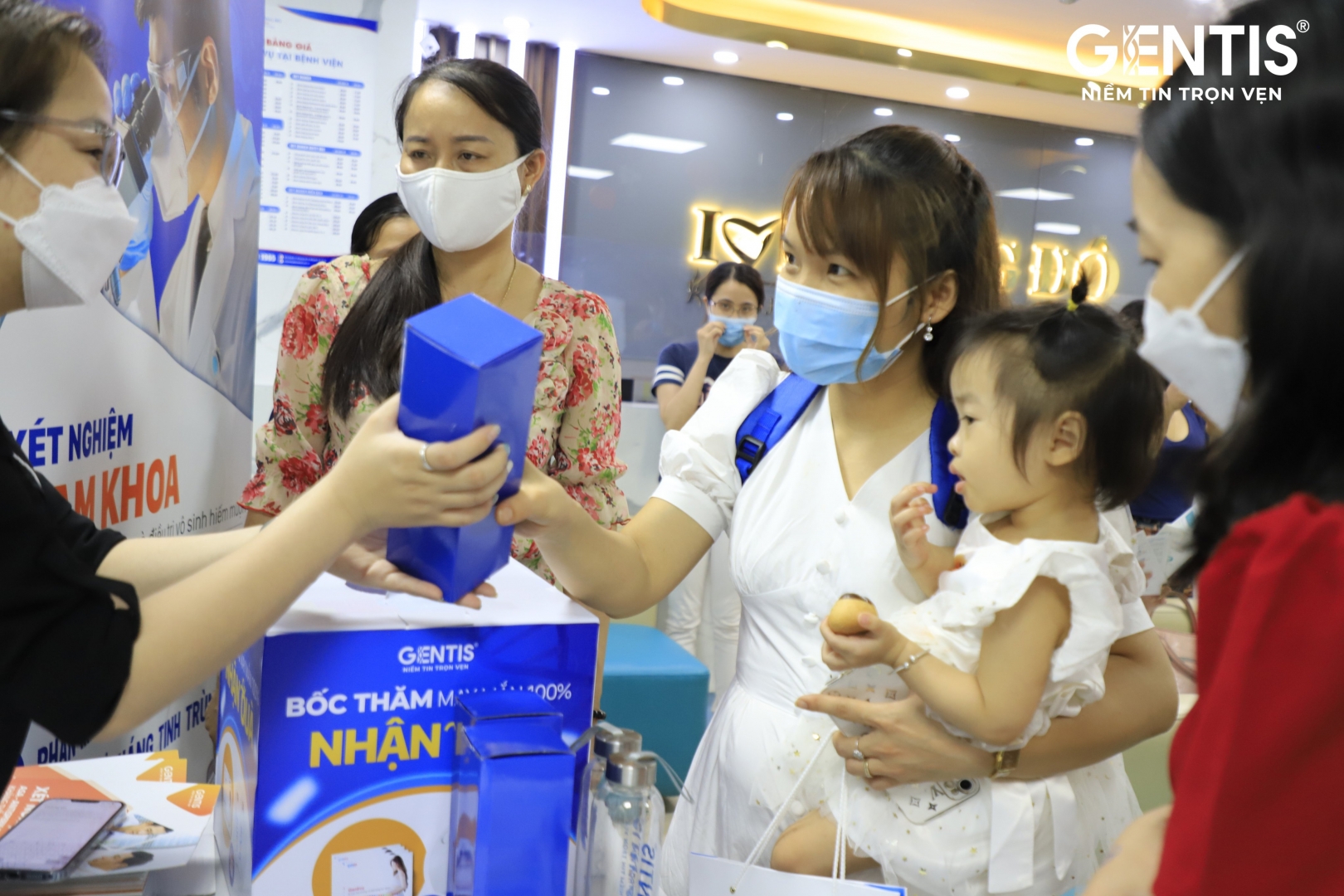 Bên cạnh đó, những Quý khách hàng đến trực tiếp Bệnh viện Đông Đô sẽ được nghe tư vấn về các dịch vụ xét nghiệm tại bàn tư vấn và được tham gia chương trình Bốc thăm trúng thưởng từ GENTIS với những phần quà hấp dẫn như bình nước GENTIS, cẩm nang sàng lọc dị tật trước sinh GenEVA…
