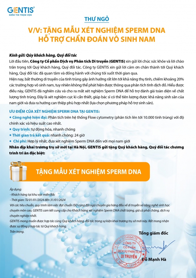 TẶNG MIỄN PHÍ XÉT NGHIỆM SPERM DNA