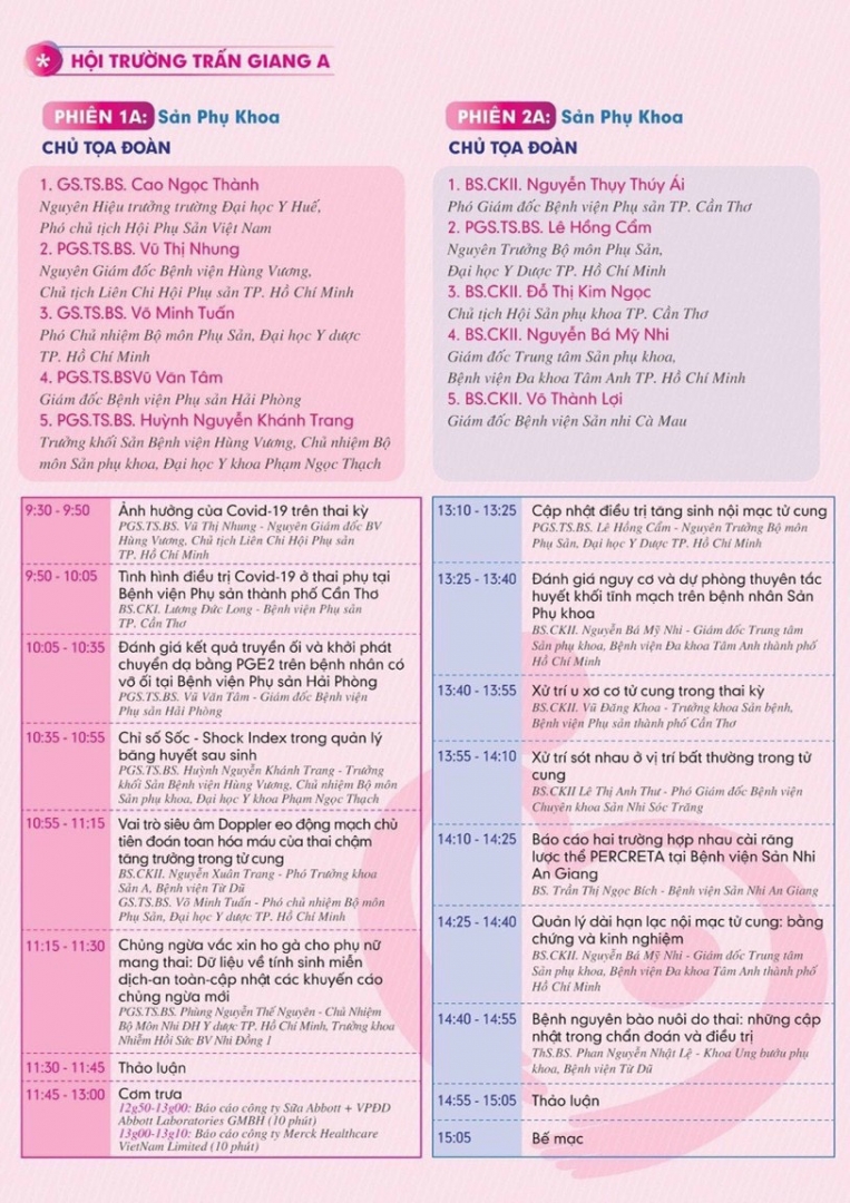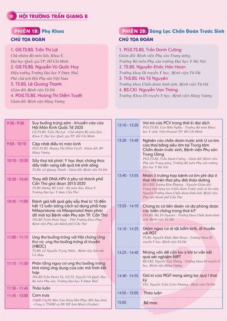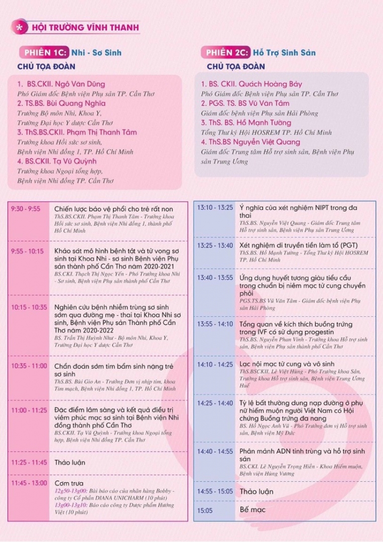 Hội nghị có sự tham gia báo cáo của nhiều chuyên gia, bác sĩ đầu ngành đến từ các tỉnh thành trên cả nước, nổi bật như: PGS.TS.BS Trần Danh Cường - Giám đốc Bệnh viện Phụ sản Trung Ương; BS Nguyễn Việt Quang - Giám đốc Trung Tâm Hỗ trợ sinh sản Quốc gia, Bệnh viện Phụ sản Trung Ương… Với các bài báo cáo xoay quanh những chủ đề nóng về sản phụ khoa, hỗ trợ sinh sản, trước và trong quá trình mang thai… như: Suy buồng trứng; Điều trị nội mạc tử cung; Ý nghĩa của sàng lọc trước sinh NIPT trong đa thai; Giảm nguy cơ dị tật bẩm sinh nhờ PGT; Ảnh hưởng của Covid-19 trên thai kỳ…