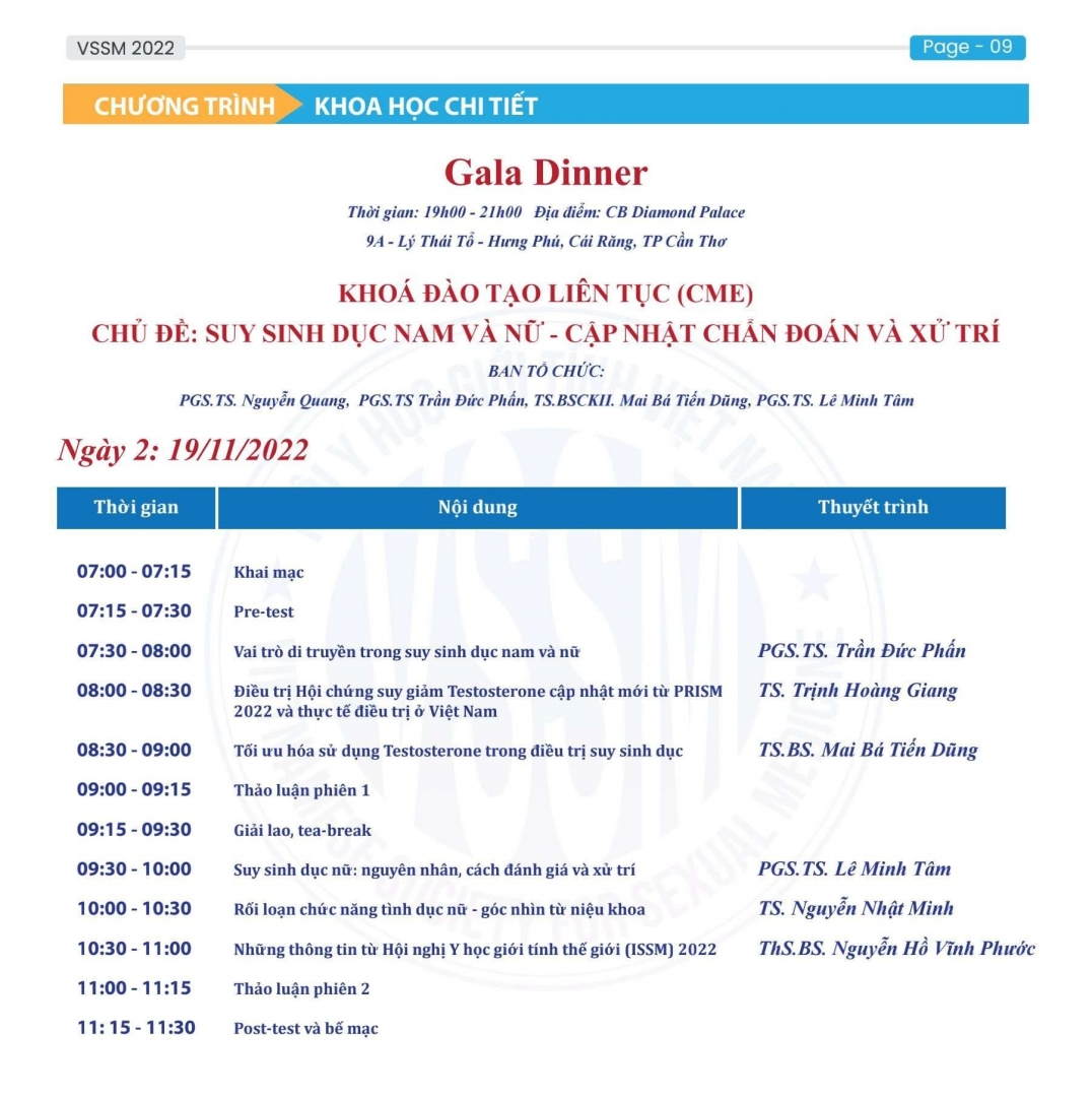 Hội nghị năm nay được tổ chức với chủ đề "VSSM 2022 - Xu hướng mới trong chăm sóc sức khỏe tình dục nam nữ" sẽ là một diễn đàn khoa học thiết thực, giúp các nhà nghiên cứu, bác sĩ nam khoa, di truyền, sản phụ khoa… có cơ hội được trao đổi kinh nghiệm, giao lưu và hợp tác, bồi dưỡng nâng cao chuyên môn, nghiệp vụ bản thân.