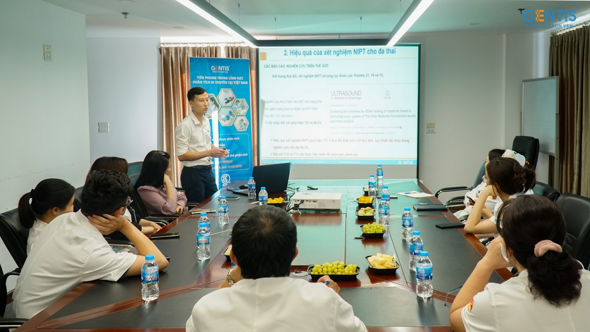 Buổi báo cáo có sự tham gia của rất nhiều y bác sĩ thuộc ban lãnh đạo, đặc biệt trong đó có sự góp mặt của bác sĩ Diêm Thị Yến - Phó Giám đốc Trung tâm Hỗ trợ sinh sản, Bệnh viện Hỗ trợ sinh sản & Nam học Đức Phúc với nhiều năm kinh nghiệm khám và điều trị các bệnh vô sinh ở nam và nữ. Phía Công ty GENTIS có sự tham gia của Trưởng nhóm Nghiên cứu và Phát triển GENTIS là Ths. Nguyễn Văn Huynh báo cáo trực tiếp về dịch vụ.