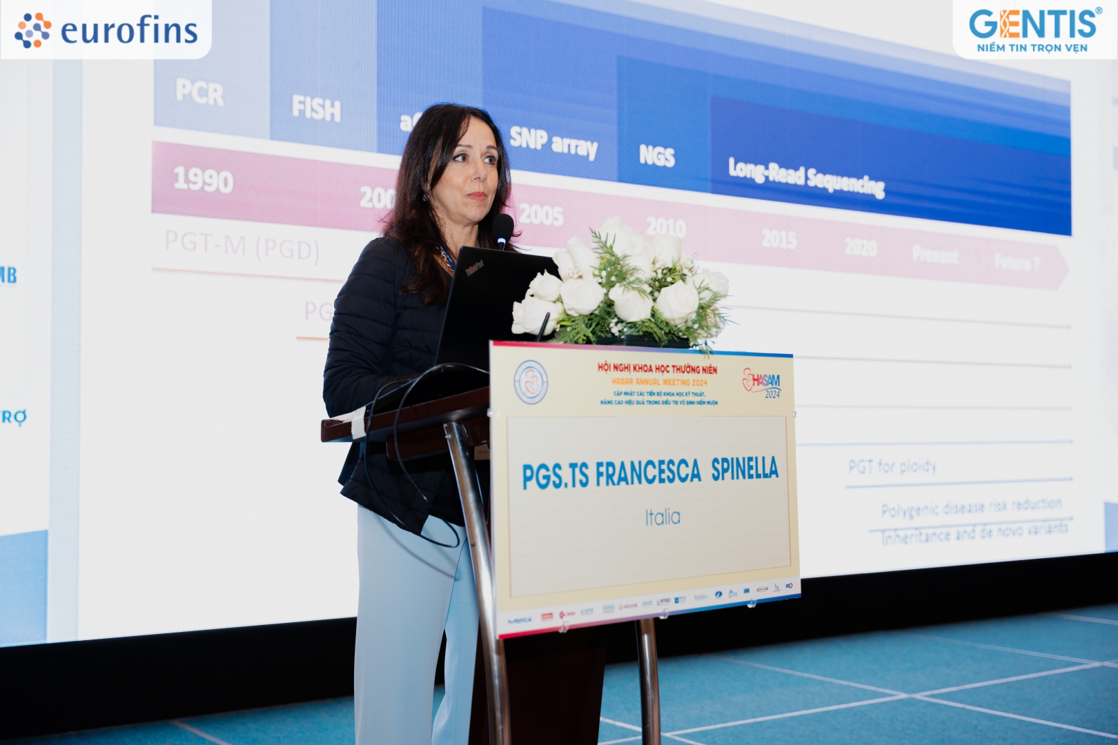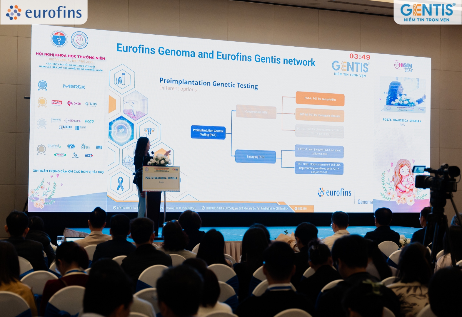 PGS.TS Francesca Spinella trình bày bài báo cáo: “Tiến bộ trong sàng lọc tiền làm tổ: Quan điểm từ châu Âu và dữ liệu của Hội Hỗ trợ sinh sản Châu Âu”