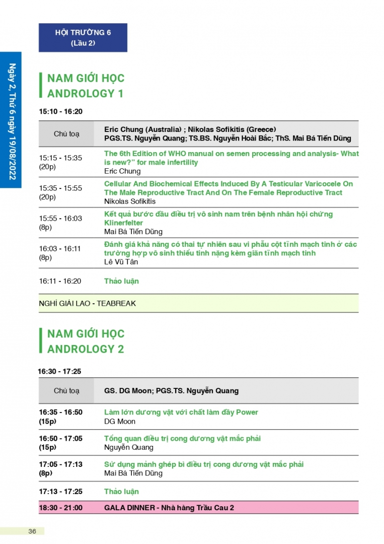 Một số báo cáo tiêu biểu trong phiên "Di truyền và sinh học tế bào" và "Nam giới học" của các Phó giáo sư, Tiến sĩ, Bác sĩ dày dặn kinh nghiệm trong lĩnh vực nam khoa như: